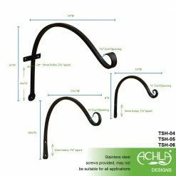 If you’re searching for strong, multi-use wall mounted hooks, the Achla Designs Wall Brackets and Hooks are a great solution. Ideal for hanging your favorite indoor and outdoor items- lanterns, wind chimes, bird feeders, flower baskets or planters. Hand-forged from square stock in wrought iron, the square hammered look has a craftsman style that fits with a vintage, rustic or artisan decorative style. These hooks are easily installed on any flat smooth surface with stainless steel hardware provided. Strong and durable, you can rest assured that your hanging hooks will stay looking elegant because the Black powder coated finish resists corrosion and weathering better than most conventional paint finishes, lasting many seasons. Achla Designs offers a wide array of brackets in many sizes and styles for every application.