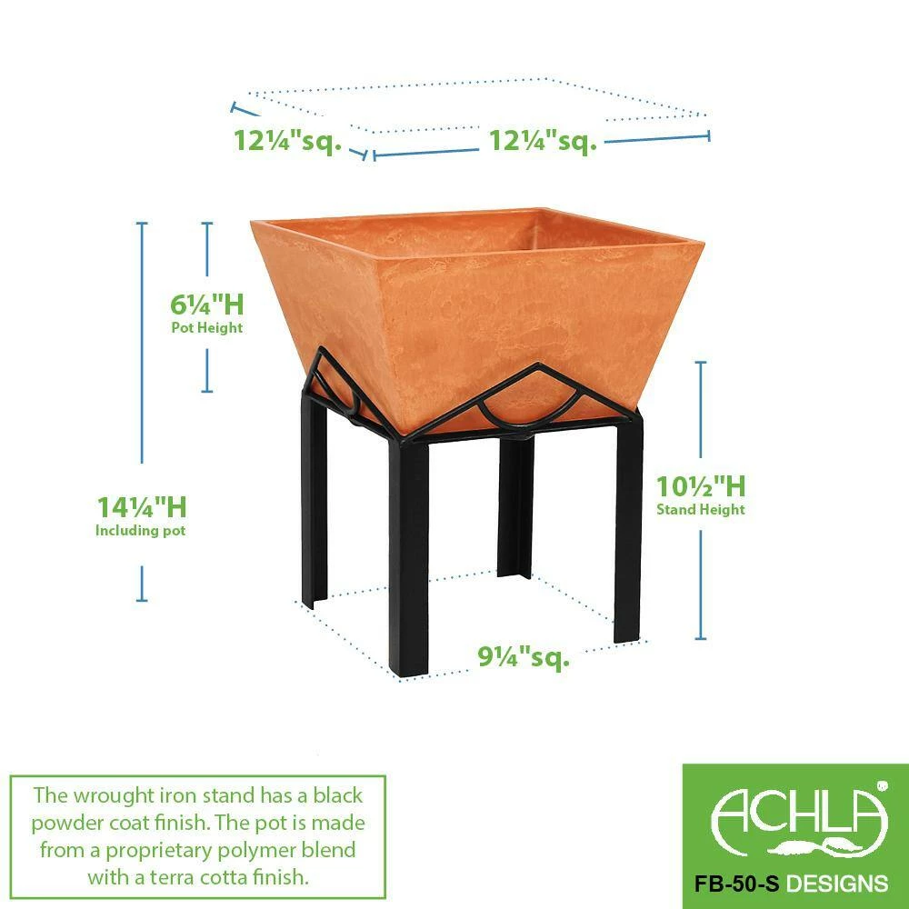 - Dimensions: measures 12.25 in. W x 12.25 in. D x 14.5 in. H, with a tapered square 12.5 in. W x 12.5 in. D x 6.25 in. H planting pot