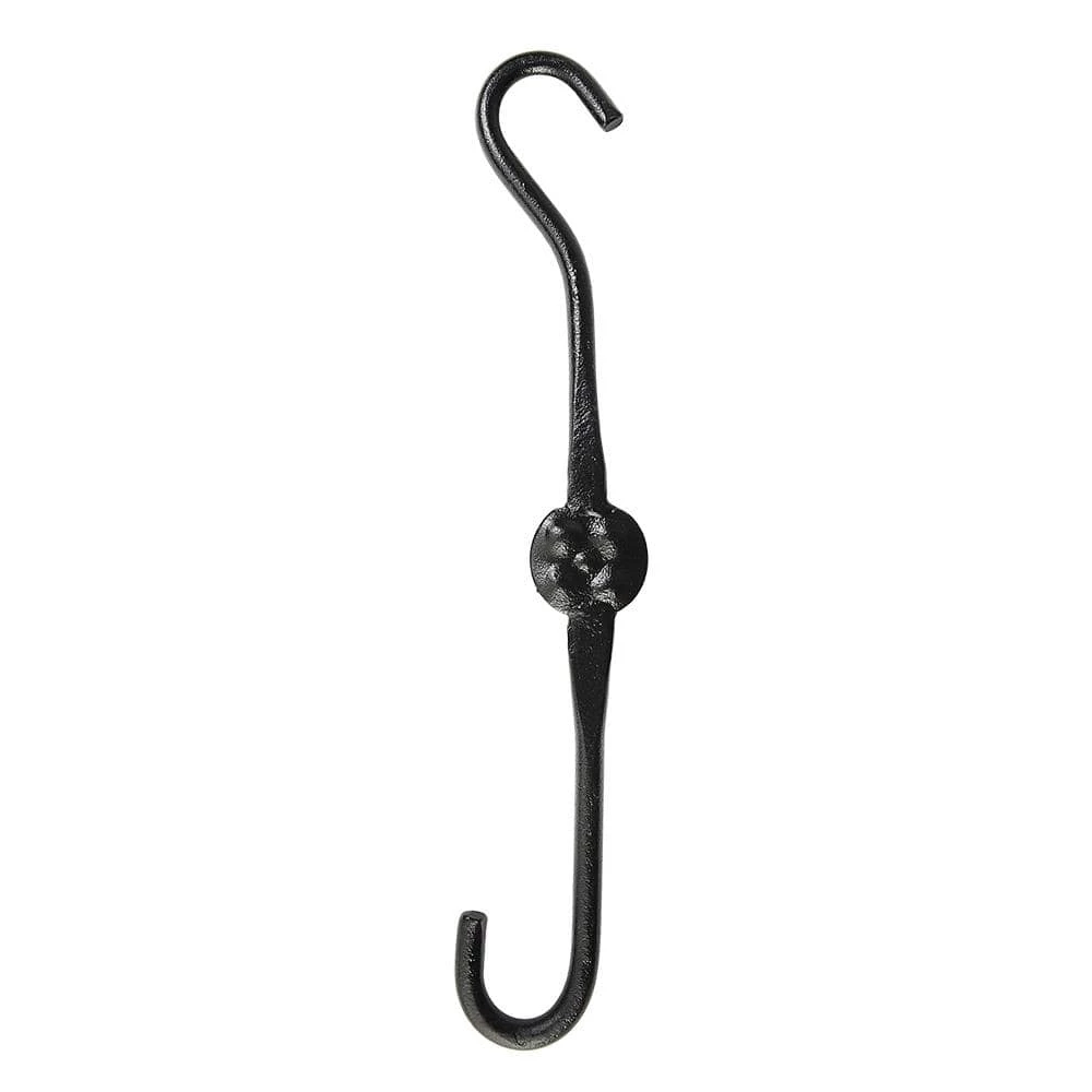 These double-ended ornamental hangers can extend your reach up to a plant hook or bracket or hook over a horizontal rod or railing. Hooks face opposite directions. Extender Hook with 2-1/8 in. hook at both ends is available in 12 in. L and 15 in. L. Extender Hook with 1 2-1/8 in. hook and 1 5-3/4 in. hook is available in 12 in. L. Both are finished in Black powder-coat.