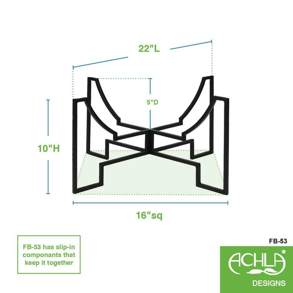 Airy and sculptural, the Jane Plant Stands consist of 2 pieces that slip together forming a strong crisscross support for any low wide planting container. The black, square-stock bases are perfect for a sculptural array of succulents or cactus garden, for a mid-century patio, terrace or sunroom. In 2 sizes, the low wide planters offer many possibilities for creativity. Add the container of your choice, as a stylish holiday tree stand, fairy garden or fountain. All of our Solaria Collection plant stands are made of wrought iron with a Black powder coated finish, designed for indoor and outdoor use, with materials and finishes for maximum weather resistance.