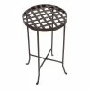 - Round table stand for potted plants: the top of this standing plant holder is circular and has 2 cross bars on which you can set flowerpots and other round planters and it is sturdy enough to hold even large pots and the top of the stand is surrounded by a rim to prevent the pots from falling off of the stand