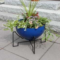- French blue planting bowl: light and durable, made from galvanized steel and finished in a bold French blue powder coating, use with plastic pot or liner, or remove plug from drainage hole for direct planting