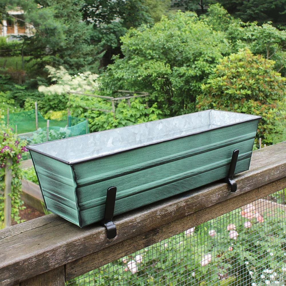 - Small green patina flower box included: small green flower box measures 22 in. L x 5 in. H, made of galvanized steel with a garden green patina finish