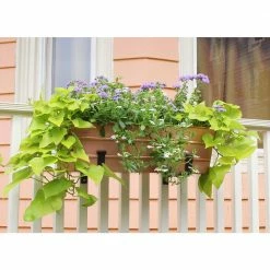 - 2 brackets included: wrought iron wall brackets project 9.25 in. from the wall x 8 in. H, and are finished with black powder coating for maximum weather resistance, two 8 in. wall-mounted flower box brackets are included to hold our medium copper flower box planter