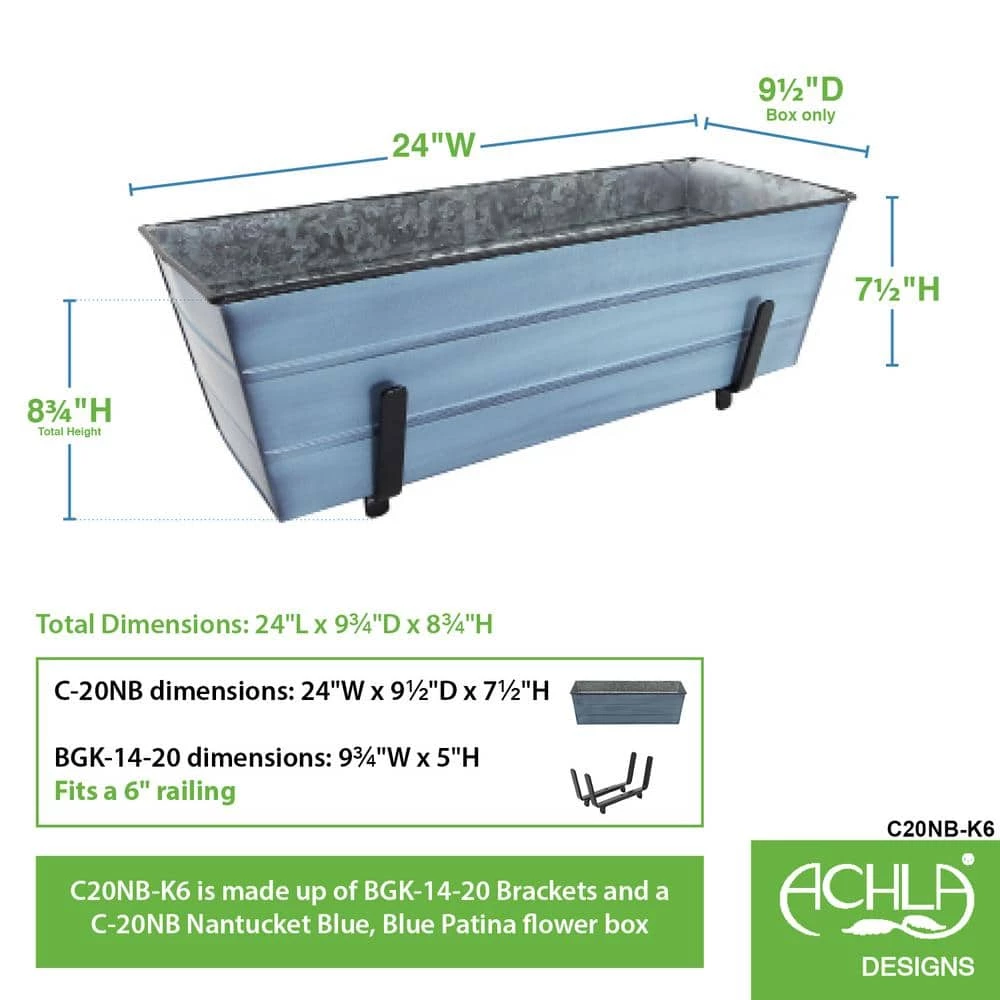 - Medium nantucket blue flower box included: medium nantucket blue flower box measures 24 in. L x 7.5 in. H, made of galvanized steel with a blue patina finish