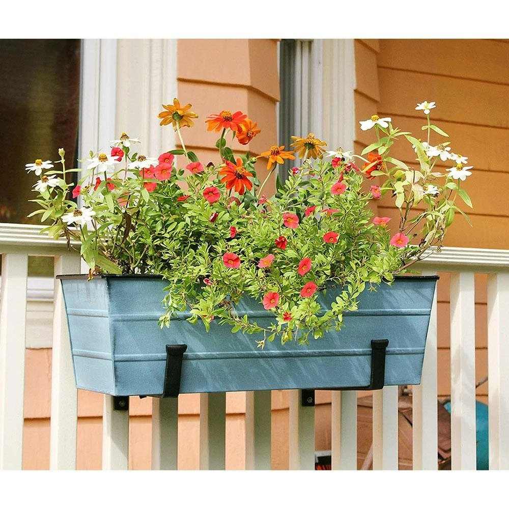 - Nantucket blue patina finish: flower boxes will develop warm natural patina over time that is a perfect complement to green foliage, measures 24 in. L x 9.5 in. W x 7.5 in. H