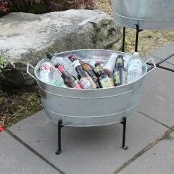 - Classic standard oval tub with folding stand: this tub and stand combination makes a stylish and practical drink chilling station, it is also great for container gardening of edibles and flowers on decks, patios and porches, sealed to be water-tight, should be drilled for direct planting