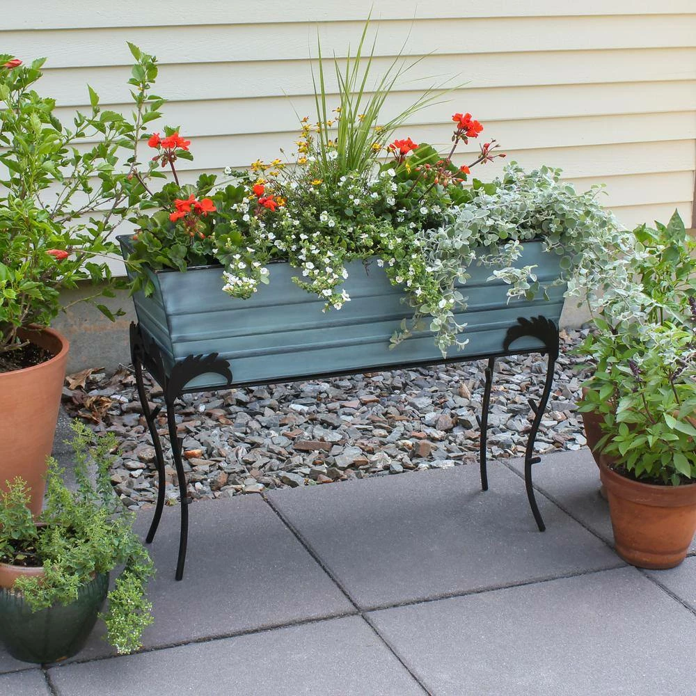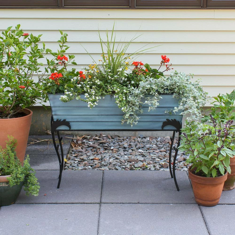 - Large Nantucket blue flower box: this large flower box measures 35.25 in. L x 11 in. W x 9.5 in. H and is made from galvanized steel with blue patina finish