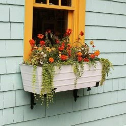 - Classic window box style: these rectangular flower boxes have a rolled edge, embossed lines and a simple classic style, with drainage holes provided for direct planting flowers, herbs, and edibles