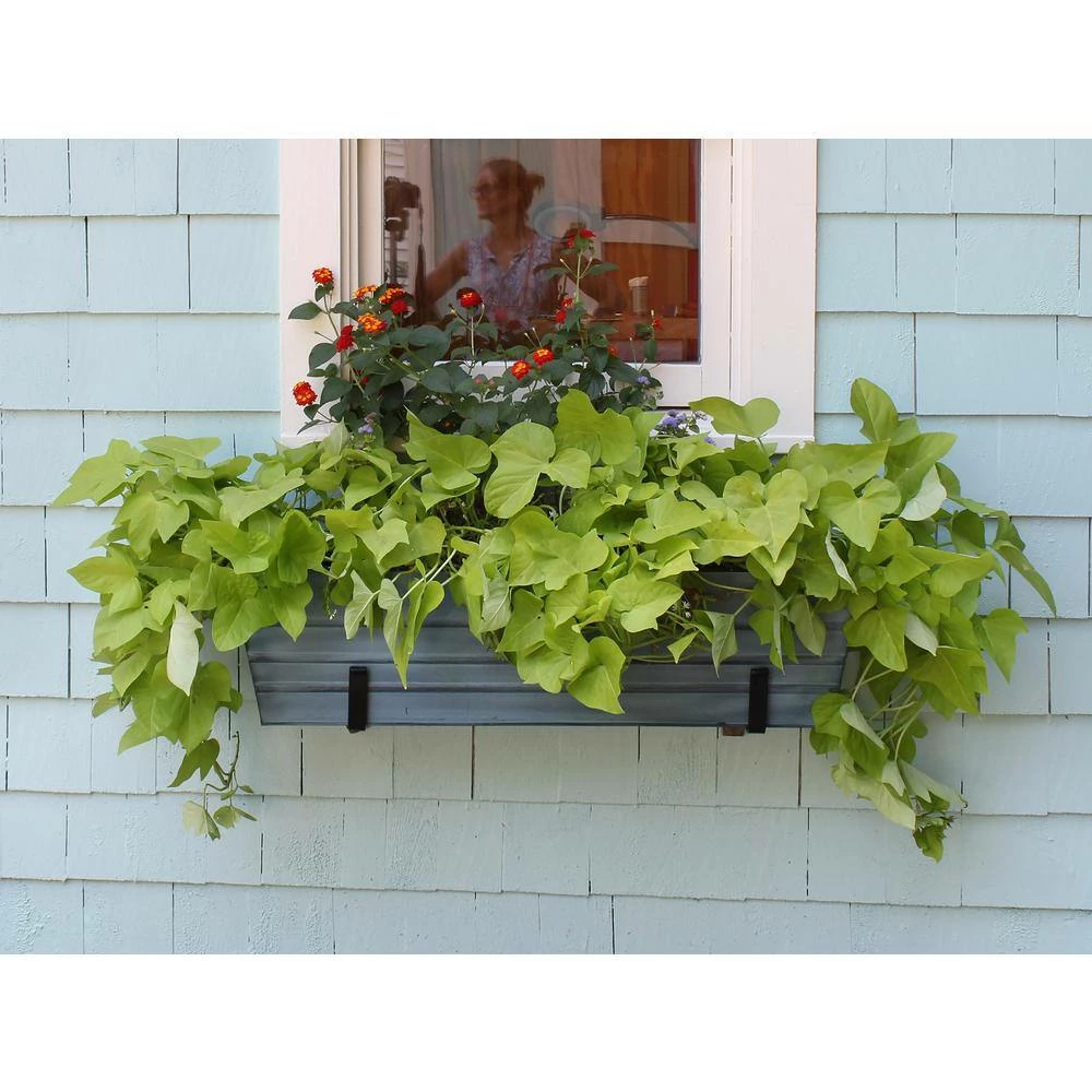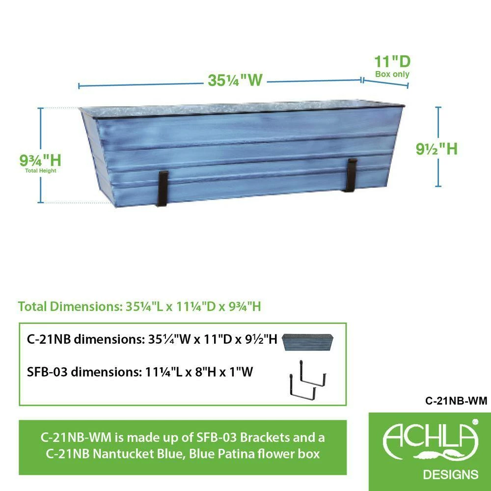 - 2 brackets included: wrought iron wall brackets project 11.5 in. from the wall x 8 in. H, and are finished with black powder coating for maximum weather resistance, two 10 in. wall-mounted flower box brackets are included to hold our large nantucket blue flower box planter