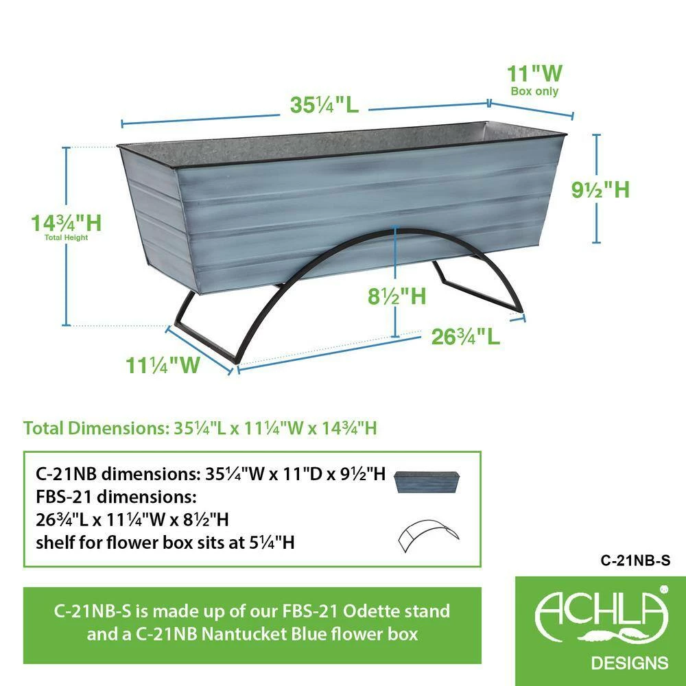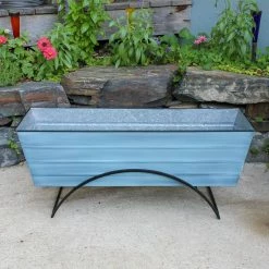 - Large Nantucket blue flower box included: large Nantucket blue flower box measures 35.25 in. L x 9.5 in. H, made of galvanized steel with a blue patina finish