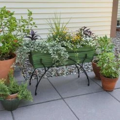 - Flower box with art deco style stand: create a green divider or multi-level arrangement for container gardening on patios, decks, porches or balconies