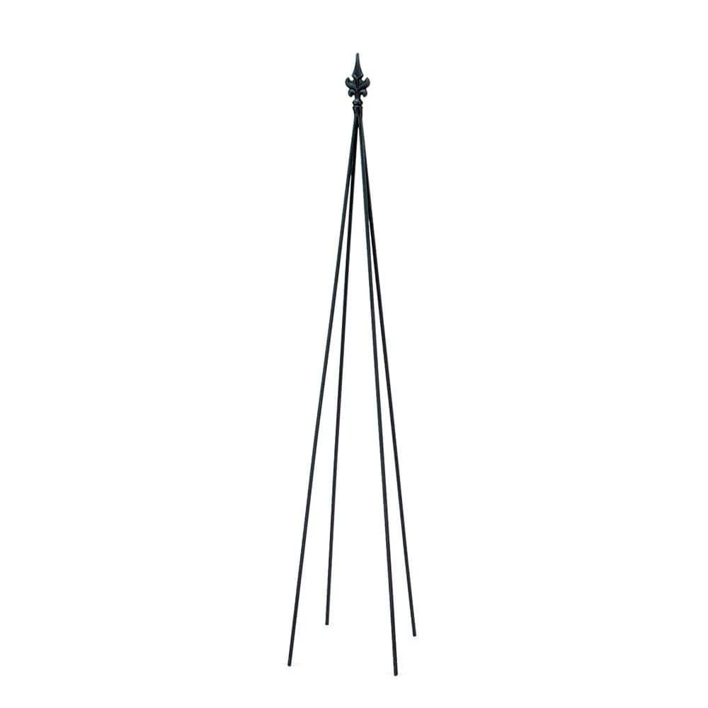 For any avid gardener or plant lover, finding a simple, yet attractive support for your climbing vines, flowers, vegetables or runners can be a challenge. The most simple of trellis designs, this 4-legged stake with Fleur-de-Lis finial is also 1 of the most versatile. Use it to support any type of climbing plant- snap pea, runner beans, Mandeville or moonflower, in containers or flowerbeds. The legs can be pulled apart to achieve desired footprint size. Compress the legs and the slim profile takes almost no space to store away at season’s end. Available in 2 heights.