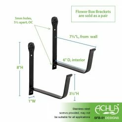 These simple and sturdy Wall Mounted Flower Box Brackets come in four sizes to fit a wide range of planter sizes. These paired brackets are affixed individually to the wall or rail according to your desired spacing. The flower box is securely captured within the front and back rails. A small floral detail tops each bracket. Use SFB-01 with Small Galvanized (C-08) and Small Copper Plated Flower Boxes (C-08C) Use SFB-02 with Medium Galvanized (VFB-05) or Medium Copper Plated (C-20C) Flower Boxes or Embossed Flower Box (C-04) Use SFB-03 with Large Galvanized (VFB-06) or either Large Copper Flower Box (C-21/C-82C) Use SFB-04 with larger flowerboxes.