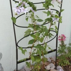 For any avid gardener or plant lover, finding attractive support for your climbing vines, flowers, vegetables, or runners can be a challenge. The Ovals Trellis is a simple, wrought iron support for small to medium vining plants that fits into a Modern or Retro 50’s garden theme. The narrow lower portion has spiked legs that can be stood directly into a garden bed or even a large pot or tub. Ideal for mandevilla, clematis, thunbergia or cardinal vine.