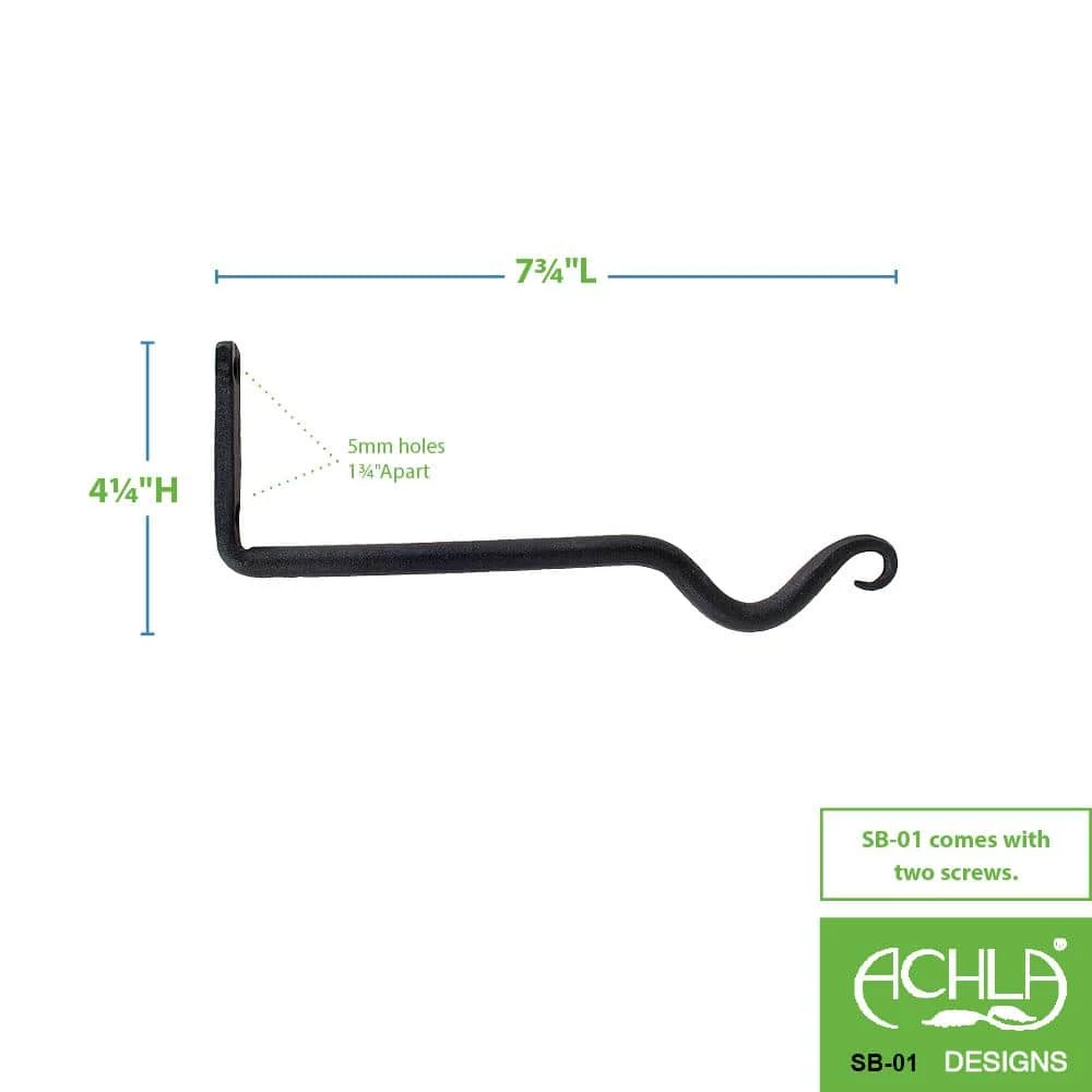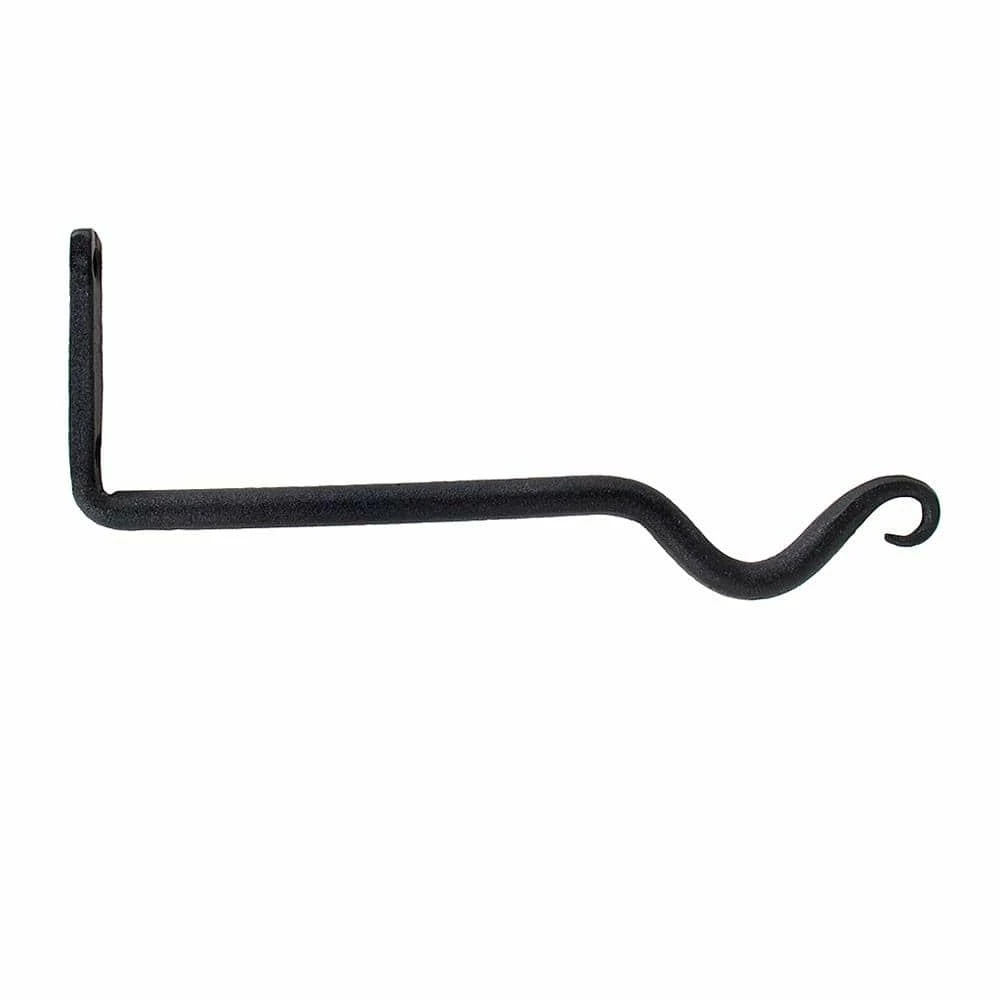 The 8 in. Upturned bracket extends straight out from the wall at a right angle and has a gentle U shaped hook at the end. Use for bells, bird feeders, lanterns or large wreaths. Extends out 8 in. L and measures 2-3/4 in. H at the wall. Finished in Black powder-coat.