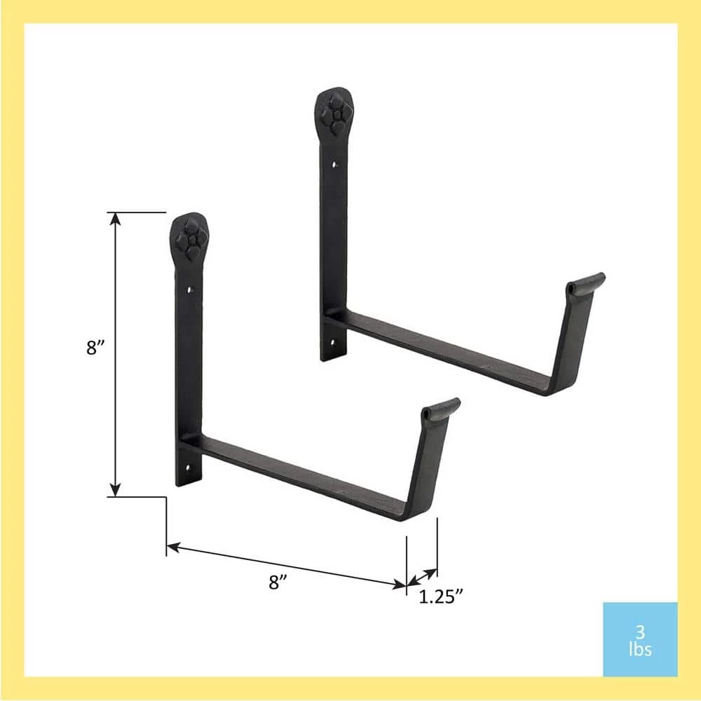 These simple and sturdy Wall Mounted Flower Box Brackets come in 4 sizes to fit a wide range of planter sizes. These paired brackets are affixed individually to the wall or rail according to your desired spacing. The flower box is securely captured within the front and back rails. A small floral detail tops each bracket. Use SFB-01 with Small Galvanized (C-08) and Small Copper Plated Flower Boxes (C-08C) Use SFB-02 with Medium Galvanized (VFB-05) or Medium Copper Plated (C-20C) Flower Boxes or Embossed Flower Box (C-04) Use SFB-03 with Large Galvanized (VFB-06) or either Large Copper Flower Box (C-21/C-82C) Use SFB-04 with larger flowerboxes.