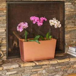 - Tall copper flower box: use this tall copper flower box to create a dramatic arrangement of orchids, a sculptural arrangement of succulents, or welcoming cascade of blooms