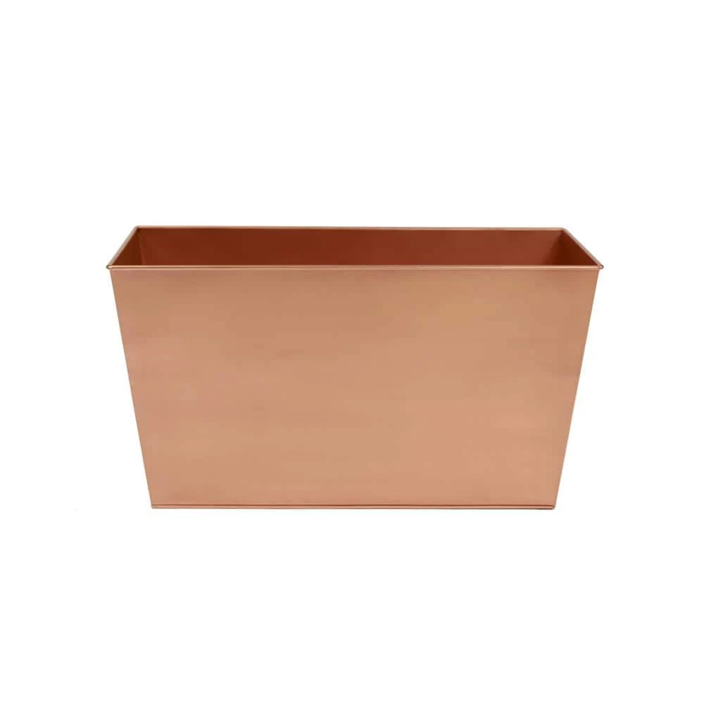 Create a dramatic arrangement of orchids for a special event, a sculptural arrangement of succulents or welcoming cascade of blooms at an entryway with this Tall Copper Flower Box from ACHLA DESIGNS. Made of galvanized steel with a brushed copper plated finish this flowerbox can be used as a cachepot, or direct planted, indoors and out. The Tall Copper Flower Box will develop warm natural patina over time that is a perfect complement to green foliage.