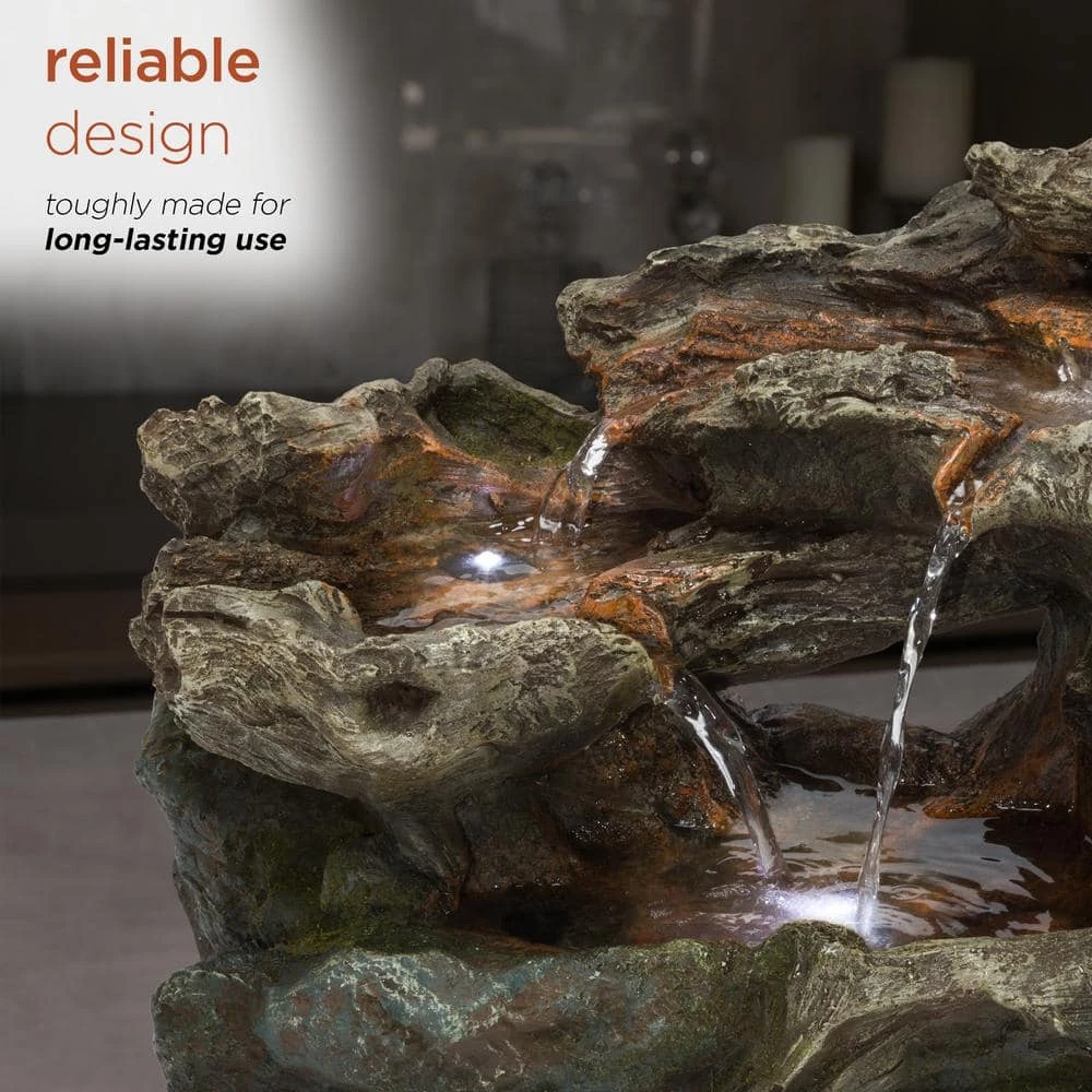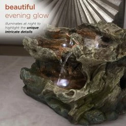 - Versatile garden decor: contemporary cascading tabletop water fountain with natural aged stone look and 3 LED lights will provide a tranquil and soothing addition to your indoor or outdoor living space