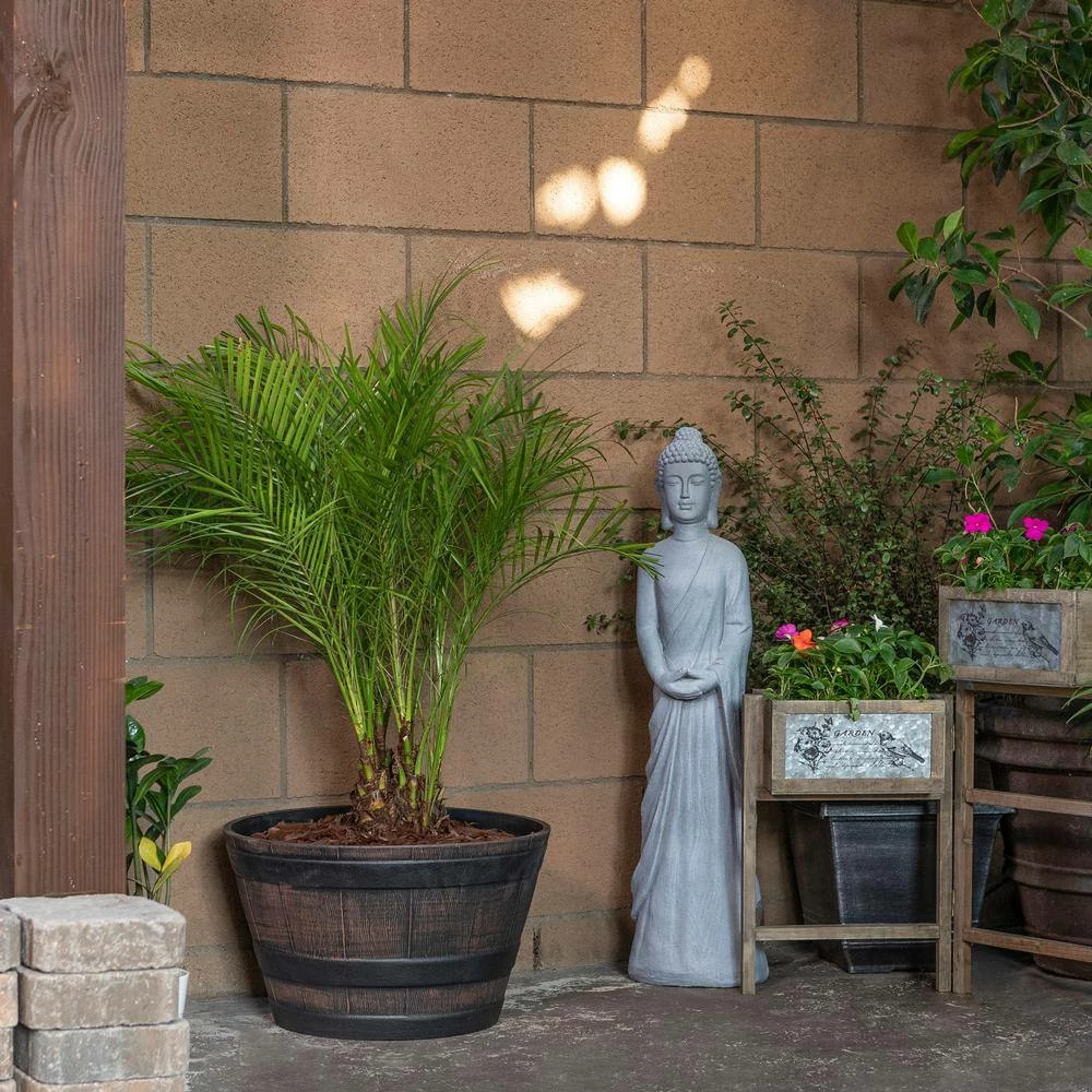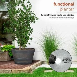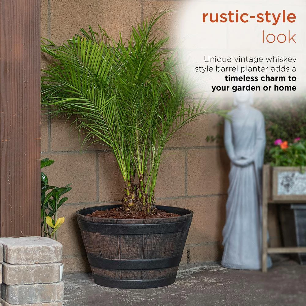 - Durable outdoor accent decor: constructed from resilient and weather-resistant plastic, the barrel shaped planter will provide long-lasting quality use in your garden or home’s entryway