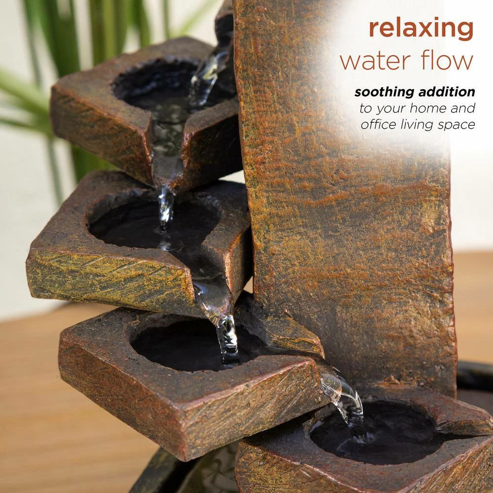 - Natural tranquility: relax to the sounds of the calming natural water flow as it trickles down from the top tier of the fountain, while adding visual interest to your outdoor conversation set or table
