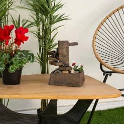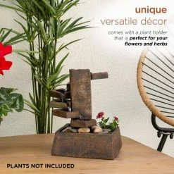 - Versatile garden decor: contemporary cascading tabletop water fountain statue with natural aged stone look, river stones and mini plant holder will provide a tranquil and soothing addition to your indoor or outdoor living space