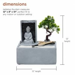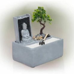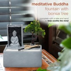 - Garden decor: fountain features a peaceful buddha holding an led-lighted candle with a bonsai tree and a zen garden for a tranquil and soothing addition to your living space or lawn
