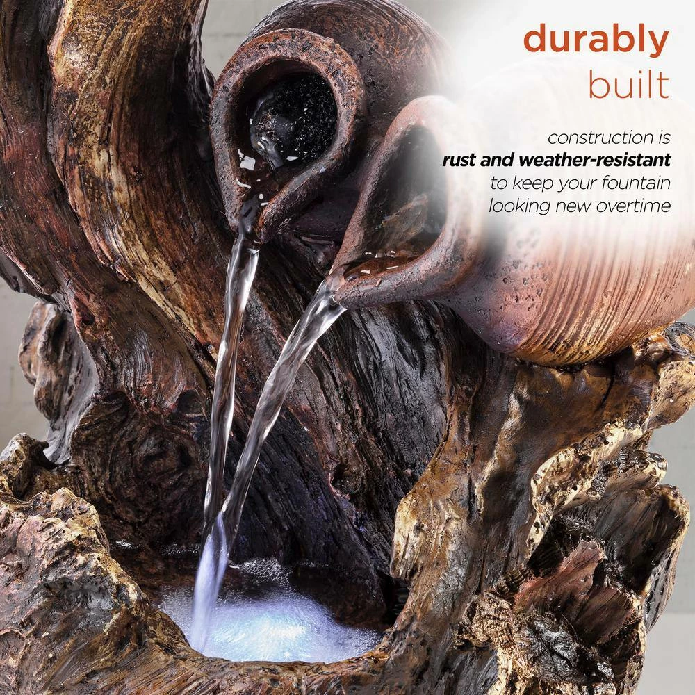 - Durable: resin, stone powder, and fiberglass construction is rust and weather-resistant to keep your outdoor fountain looking new over time