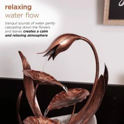 - Relaxing water flow: tranquil sounds of water gently cascading down the flowers and leaves creates a calm and relaxing atmosphere while blocking out other noises