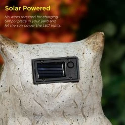 - Illuminate your outdoor area: features an LED light in each eye of the larger owls powered by solar energy to keep your outdoor yard statue lit up for up to 8 hours on one full charge