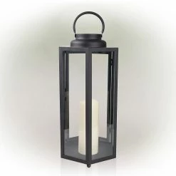 - BATTERY-OPERATED OUTDOOR DÉCOR WITH LED LIGHTS: Modern style lantern features an LED light powered by 2 AA batteries to offer your guests a warm welcome, and provides a unique and stylish addition to your exterior decor