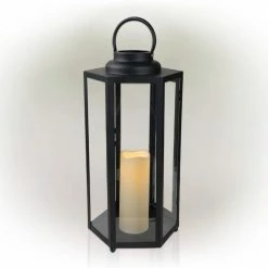 Add contemporary style to your yard with the 18″ tall Outdoor Battery-Operated Lantern with LED Lights from Alpine Corporation. This lighted home decorative piece features 3 impressive candle LED lights from each simulated flame bulb. It’s powered by 2 AA batteries to offer your guests a warm welcome. The timer function allows you to automatically turn-off the light after 6 hours of use once the parameter is set and 18 hours of sleep before it lights up again. This lovely antique finish lantern is constructed from durable plastic and glass. Toughly made for long-lasting quality use in your yard, garden, porch, veranda, or any indoor and outdoor space. Add one or multiple lanterns to create an enchanted home decor display. This unique lamp is perfect for display in entryways, courtyards, other outdoor living spaces, and inside your home. The decorative garden decor measures 9″L x 9″W x 18″H and 21″ while hanging to fit almost any indoor or outdoor space, and includes a one-year manufacturer’s warranty from the date of purchase. Alpine Corporation is one of America’s leading designers, importers, and distributors of superior quality home and garden decor products. Alpine’s award-winning in-house design team continuously develops new and innovative “statement pieces” for your home and garden.