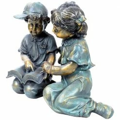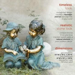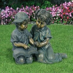 - Outdoor statue: finely sculpted detail of boy and girl reading statue set looks great in your yard or garden, or placed on your deck or porch