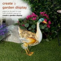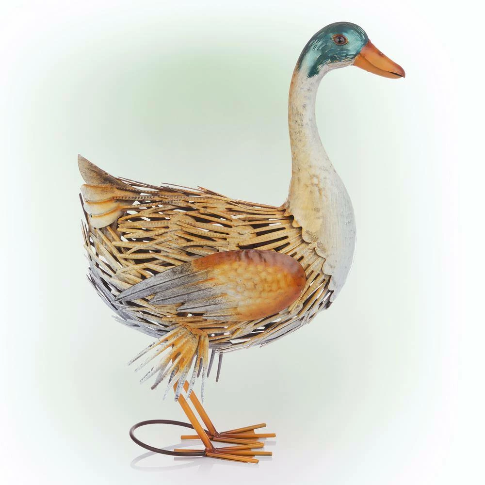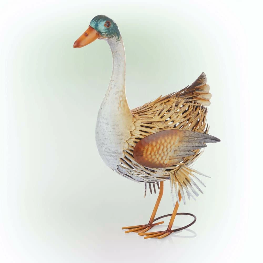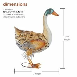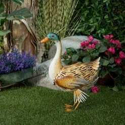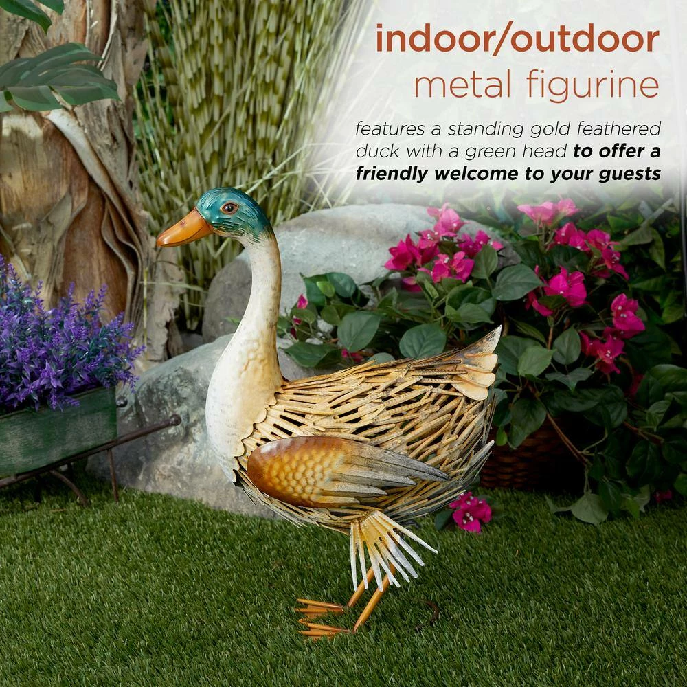 - Indoor/outdoor metal fogurine: features a standing gold feathered duck with a green head to offer a friendly welcome to your guests