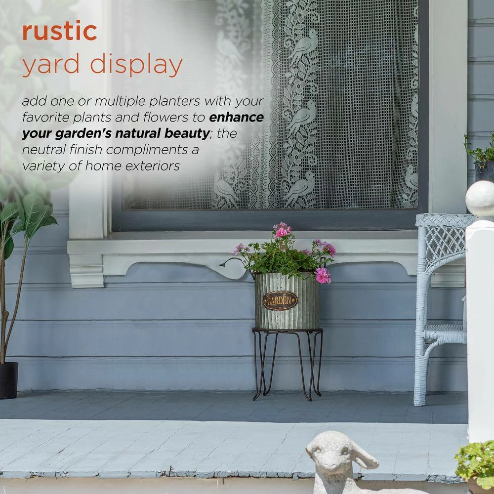 - Rustic yard display: add one or multiple planters with your favorite plants and flowers to enhance your garden’s natural beauty; the neutral finish complements a variety of home exteriors