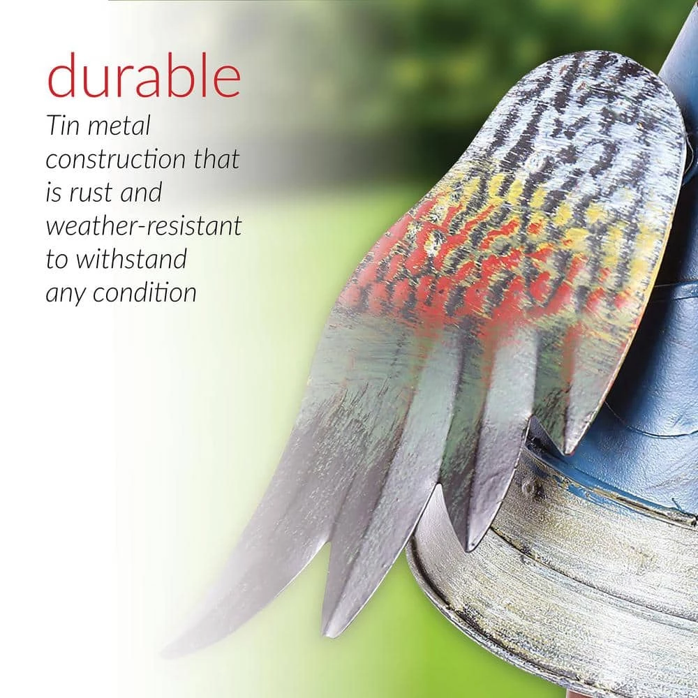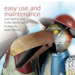 - Rustic look: metal fountain incorporates artful details such as shining eyes and colored wings to add rustic charm and beauty to your space