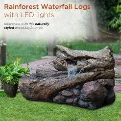 Relax and enjoy the sounds of nature with the Alpine Corporation 2-Tier Rainforest Waterfall Logs Fountain. This outdoor fountain looks great in your garden, patio, deck, porch, or yard space. The gentle cascade of water emits a calming, relaxing sound you’ll love at the end of the day. Completely natural in appearance right down to the rocky base, the fountain is actually crafted of durable, weather-resistant fiberglass, resin, and stone powder. Intergrated LED lights illuminate your space, drawing attention to the relaxing water pool day or night for added ambiance. To use, simply plug it in to an outdoor outlet, fill lower level with water, and watch as the interior pump creates a lovely water flow reminiscent of a lush rainforest. With a 1-year warranty, you can be confident in the quality of your purchase. Fountain measures 40 in. L x 20 in. W x 24 in. H for use in yards of any size. Alpine Corporation is one of America’s leading designers, importers, and distributors of superior quality home and garden Decor products. Alpine’s award winning in-house design team continuously develops new and innovative “statements pieces” for your home and garden. Your outdoor living spaces will be the envy of the neighborhood with our wide assortment of fresh, fashionable and contemporary products, from beautifully crafted solar garden stakes featuring patented motion and fiber optic lighting technology to gorgeous glass and glow-in-the-dark birdbaths and feeders.