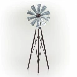 Welcome your guests with the 24 in. tall Outdoor Metal Windmill Spinner Garden Yard Decoration from Alpine. This bronze and silver colored outdoor yard art is made with 10 metal blades that replicate a windmill and add a breathtaking display of spinning movement and motion. Skillfully crafted from weather-resistant and sturdy iron, the all-season decorative spinner can be cleaned easily to keep its reflective shine and rustic appearance. Add one or multiple spinners to enhance your garden’s natural beauty with their eye-catching movements. Add an attractive outdoor display by lining several spinners along your driveway or front walkway or in your garden. All parts are included for a quick install and convenient outdoor decorating. The outdoor spinner can sit on a tabletop indoors or outdoors or along pathways or in your flowerbeds. This compact wind spinner measures 8 in. L x 11 in. W x 24 in. H and includes a 1-year manufacturer’s warranty from date of purchase.