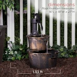 - Relaxing water flow: water trickles from the pump spout into the barrel tiers, adding a peaceful ambiance to your outdoor setting