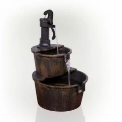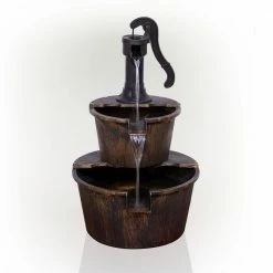Add some rustic charm to your home and outdoor Decor with the Alpine Corporation Two Tier Barrel & Pump Bronze Fountain. Relax as you listen to the peaceful pour of water that cascades down as you enjoy a glass of lemonade on a warm, sunny afternoon. Full of rustic charm, this Alpine Corporation garden fountain will add a little bit of country ambiance to your indoor or outdoor decor. Water fountain measures 16 in. L x 18 in. W x 27 in. H, the perfect size for your yard.Alpine Corporation is one of America’s leading designers, importers, and distributors of superior quality home and garden Decor products. Alpine’s award winning in-house design team continuously develops new and innovative “statements pieces” for your home and garden. Your outdoor living spaces will be the envy of the neighborhood with our wide assortment of fresh, fashionable and contemporary products, from beautifully crafted solar garden stakes featuring patented motion and fiber optic lighting technology to gorgeous glass and glow-in-the-dark birdbaths and feeders.