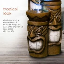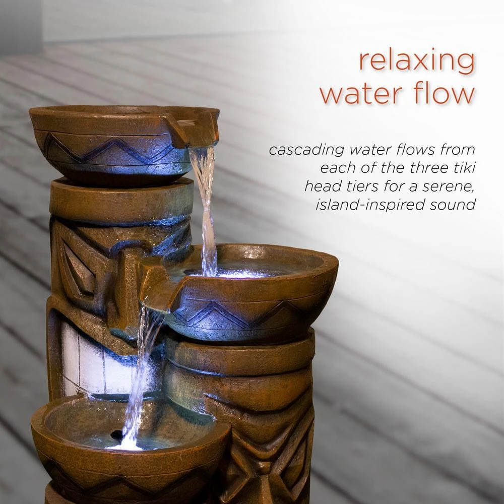 - Relaxing water flow: cascading water flows from each of the three tiki head tiers for a serene, island-inspired sound