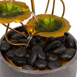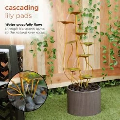 - Beautiful design: features lily pads that gently guide the water down to the rocks in the modern base creates a look that is stylish with any decor