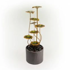 Add nature-inspired style to your home with the Alpine Corporation 31 in. Tall Indoor/Outdoor Multi-Tiered Lily Pads Metal Fountain. With this high-quality fountain, you can create a meditative, relaxing atmosphere, even in an urban jungle. The metal lily pads gently guide water down to the rocks in the modern base to create an exquisite focal point in your home’s entryway, garden, patio, deck, porch or yard space. Take in the tranquil sounds of the water gently flowing to create a calming environment. The galvanized metal construction is weather-resistant rust-resistant and durable for years of quality use. All parts are included for an easy, hassle-free set-up. With a 1-year warranty, you can be confident in the quality of your purchase. The fountain measures 13 in. L x 10 in. W x 31 in. H for use in your home or in yards of any size. Alpine Corporation is one of America’s leading designers, importers and distributors of superior quality home and garden decor products. Alpine’s award winning in-house design team continuously develops new and innovative “statements pieces” for your home and garden. Your outdoor living spaces will be the envy of the neighborhood with our wide assortment of fresh, fashionable and contemporary products, from beautifully crafted solar garden stakes featuring patented motion and fiber optic lighting technology to beautiful fountains and delightful bird baths and feeders.