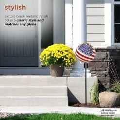 Display your artful Gazing Globe with the Alpine Corporation Gazing Globe Stand Garden Stake. Place your favorite globe on the stand, stake into your yard or garden to immediately add artful styling to your space. This stand is made of durable powder-coated iron with a stylish black finish for years of quality use. Your yard will be the delight of guests, family, and friends. To use, simply stick the two stakes into the ground. With a 1-year warranty, you can be confident in the quality of your purchase. Stand measures 5 in. L x 2 in. W x 31 in. H for use in yards of any size. Alpine Corporation is one of America’s leading designers, importers, and distributors of superior quality home and garden decor products. Alpine’s award winning in-house design team continuously develops new and innovative “statements pieces” for your home and garden. Your outdoor living spaces will be the envy of the neighborhood with our wide assortment of fresh, fashionable and contemporary products, from beautifully crafted solar garden stakes featuring patented motion and fiber optic lighting technology to gorgeous glass and glow-in-the-dark bird baths and feeders.