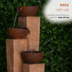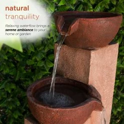 - Outdoor tiered pots fountain: rustic-inspired fountain is the perfect addition to your decor with an interior pump that keeps the water flowing – just plug it in