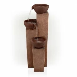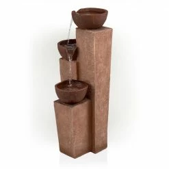 Add rustic style to your outdoor space with the Alpine Corporation 35 in. Tall Outdoor Layered 3-Tiered Pots Fountain. This high-quality fountain with old-world charm will complement your outdoor decor as it creates a meditative, relaxing atmosphere. The tranquil sounds of water gently flowing over the natural-Looking pots creates a calming environment. The polystone and fiberglass construction is weather-proof, rust-resistant and durable for years of quality use. All necessary parts are included for a hassle-free set-up. With a 1-year warranty, you can be confident in the quality of your purchase. The fountain measures 13 in. L x 13 in. W x 35 in. H for use in in your garden, patio, deck, porch or yard space. Alpine Corporation is one of America’s leading designers, importers and distributors of superior quality home and garden decor products. Alpine’s award winning in-house design team continuously develops new and innovative “statements pieces” for your home and garden. Your outdoor living spaces will be the envy of the neighborhood with our wide assortment of fresh, fashionable and contemporary products, from beautifully crafted solar garden stakes featuring patented motion and fiber optic lighting technology to beautiful fountains and delightful bird baths and feeders.