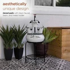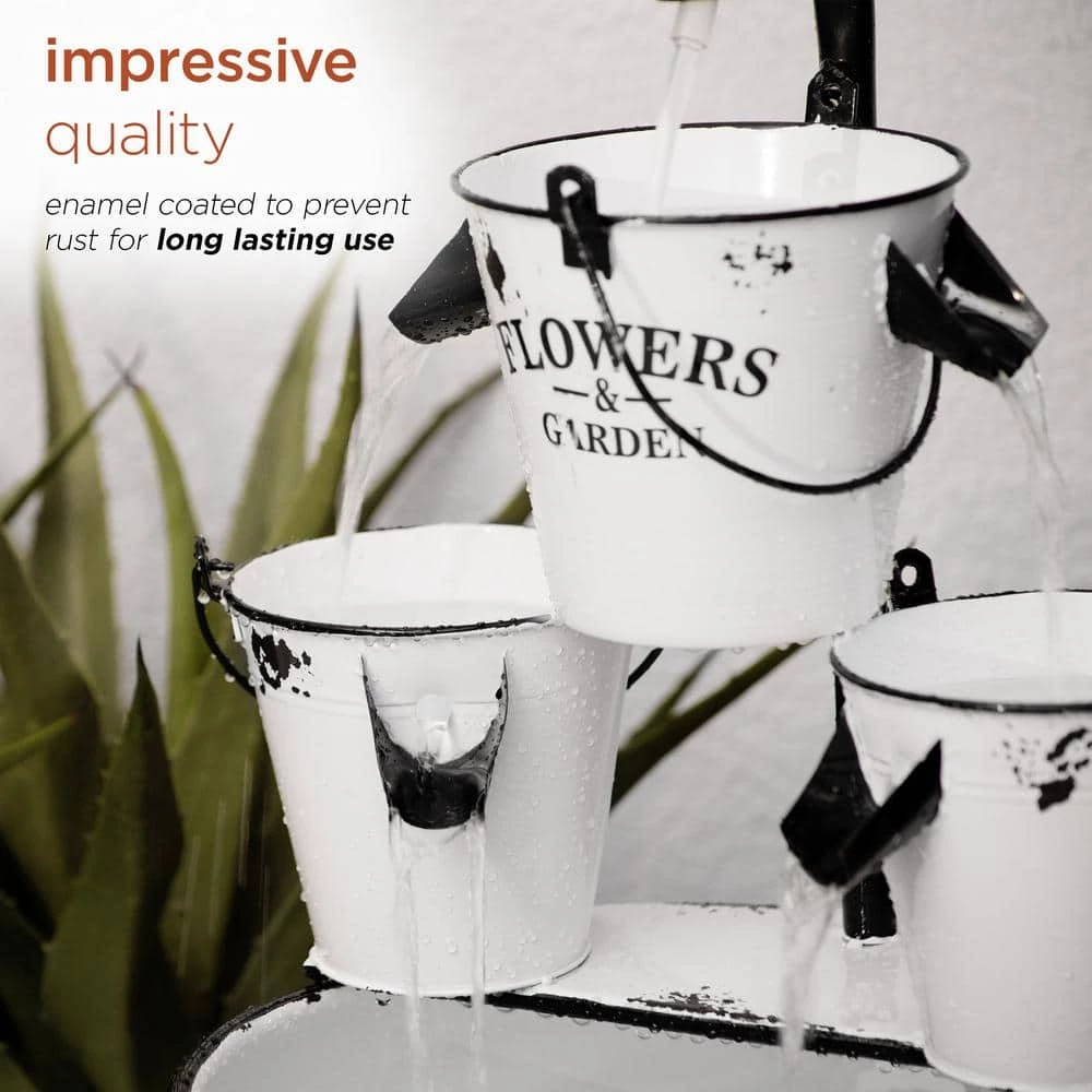 - Natural tranquility: relax to the sounds of the calming natural water flow as it trickles down through the buckets, while adding visual interest to your courtyard, garden, or lawn