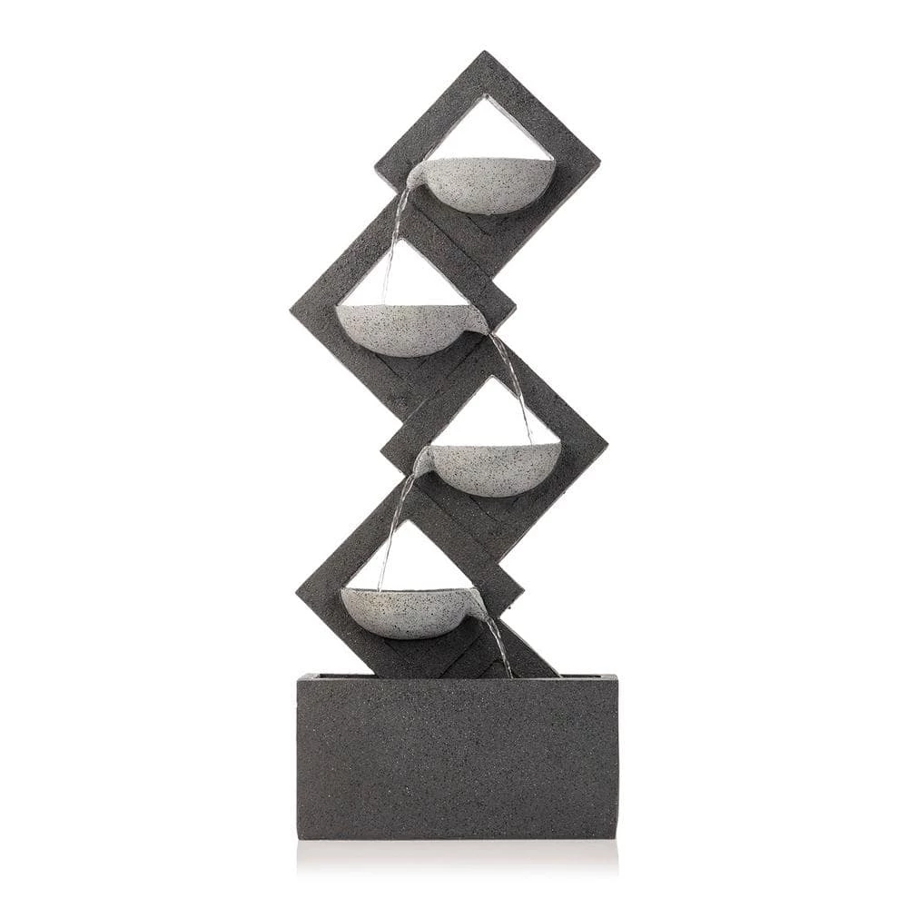 Add modern style to your indoor/outdoor space with the Alpine Corporation Soothing 4-Tier Zen Fountain with LED Lights. With this high-quality fountain, you can create a meditative, relaxing atmosphere, even in an urban jungle. The contemporary and stylish two-tone stone like design looks great in your garden, patio, deck, porch, or indoor space. Take in the tranquil sounds of the water gently cascading down the 4 pots to create a calming environment. LED lights in each of the tiers illuminate your space, drawing attention to the relaxing water pools day or night for added ambiance. The polyresin construction is weather-proof, rust-resistant, and durable for years of quality use. To use, simply plug in to an outlet, fill lower level with water, and watch as the interior pump with 6 ft. cord length, creates a lovely water flow reminiscent of a trickling stream. With a 1-year warranty, you can be confident in the quality of your purchase. Fountain measures 16 in. L x 8 in. W x 39 in. H for use in your home or in yards of any size.