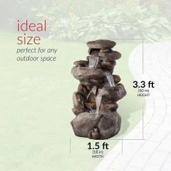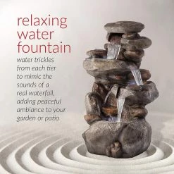 - Relaxing water flow: water trickles from each tier to mimic the sounds of a real waterfall, adding peaceful ambiance to your outdoor setting